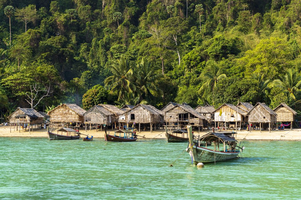 จุดเช็กอินน่าสนใจอีกแห่งของหมู่เกาะสุรินทร์ คือ หมู่บ้านชาวมอแกน ซึ่งตั้งอยู่อ่าวบอนใหญ่ เกาะสุรินทร์ใต้ โดยสามารถนั่งเรือหัวโทงจากเกาะสุรินทร์เหนือมาที่นี่ได้ ใช้เวลาประมาณ 30 นาที