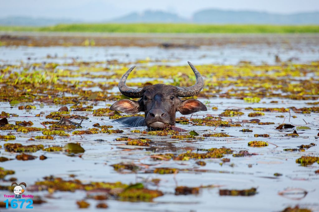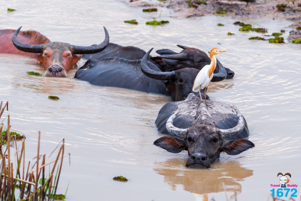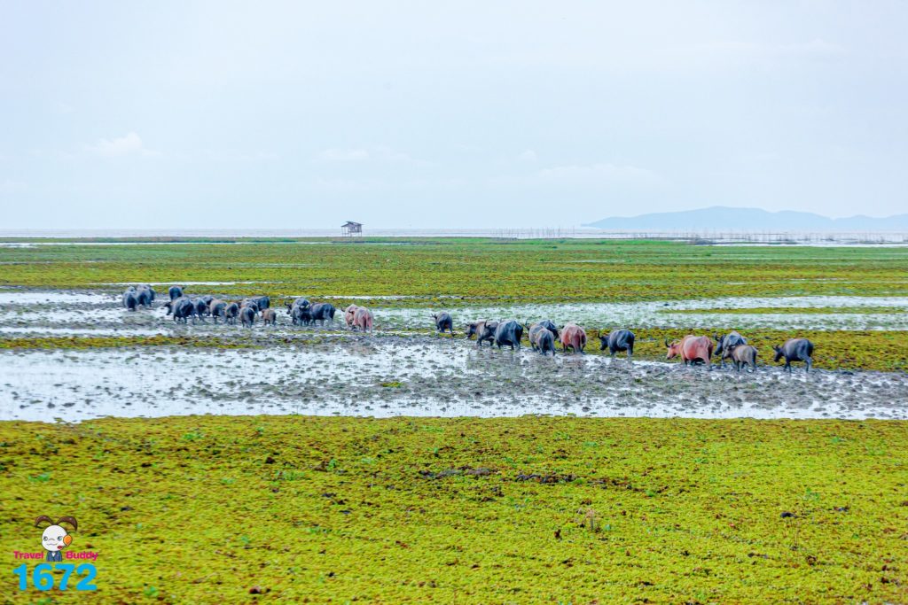 ฝูงควายน้ำพากันเดินเรียงแถวมุ่งสู่เวิ้งน้ำเบื้องหน้า เป็นภาพที่สร้างความประทับใจให้กับนักท่องเที่ยวไม่น้อย