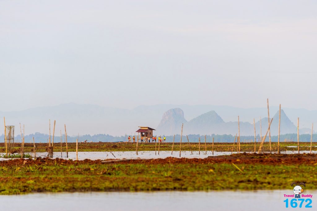 นั่งเรือจากปากประ 15-20 นาที ก็มาถึงทะเลน้อย