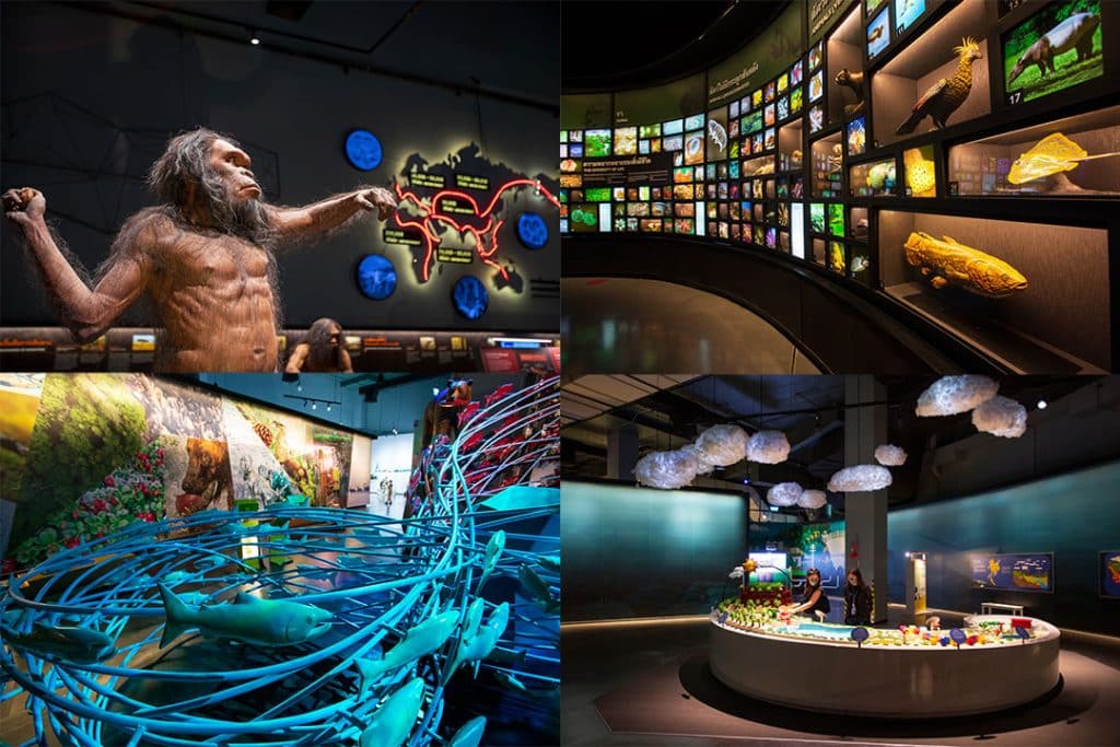 นิทรรศการหลัก ๆ คือ เรื่องราวการกำเนิดโลก และวิวัฒนาการของสิ่งมีชีวิตต่าง ๆ ตั้งแต่สมัยดึกดำบรรพ์มาจนปัจจุบัน ผ่านการนำเสนอหลากหลายวิธี ทั้งมัลติมีเดีย แบบจำลอง รวมถึงการจัดแสดงสัตว์สตัฟฟ์และโครงกระดูกจริง ที่ช่วยให้เราเข้าใจเรื่องธรรมชาติวิทยาได้ดียิ่งขึ้น