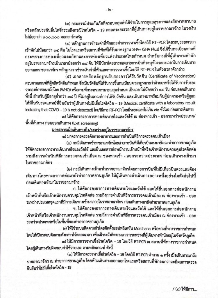 (2) กรณีเดินทางเข้ามาในราชอาณาจักรโดยสายการบินที่ไม่มีเที่ยวบินตรงและต้องเดินทางโดยทางอากาศต่อมายังท่าอากาศยานภูเก็ต ให้ผู้เดินทางดำเนินการอย่างหนึ่งอย่างใดดังต่อไปนี้ก่อนเดินทางเข้ามาในราชอาณาจักร