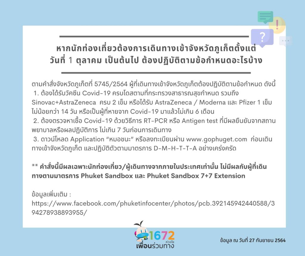 ดูข้อมูลเพิ่มเติมได้ที่ : https://www.facebook.com/phuketinfocenter/photos/pcb.392145942440588/394278938893955