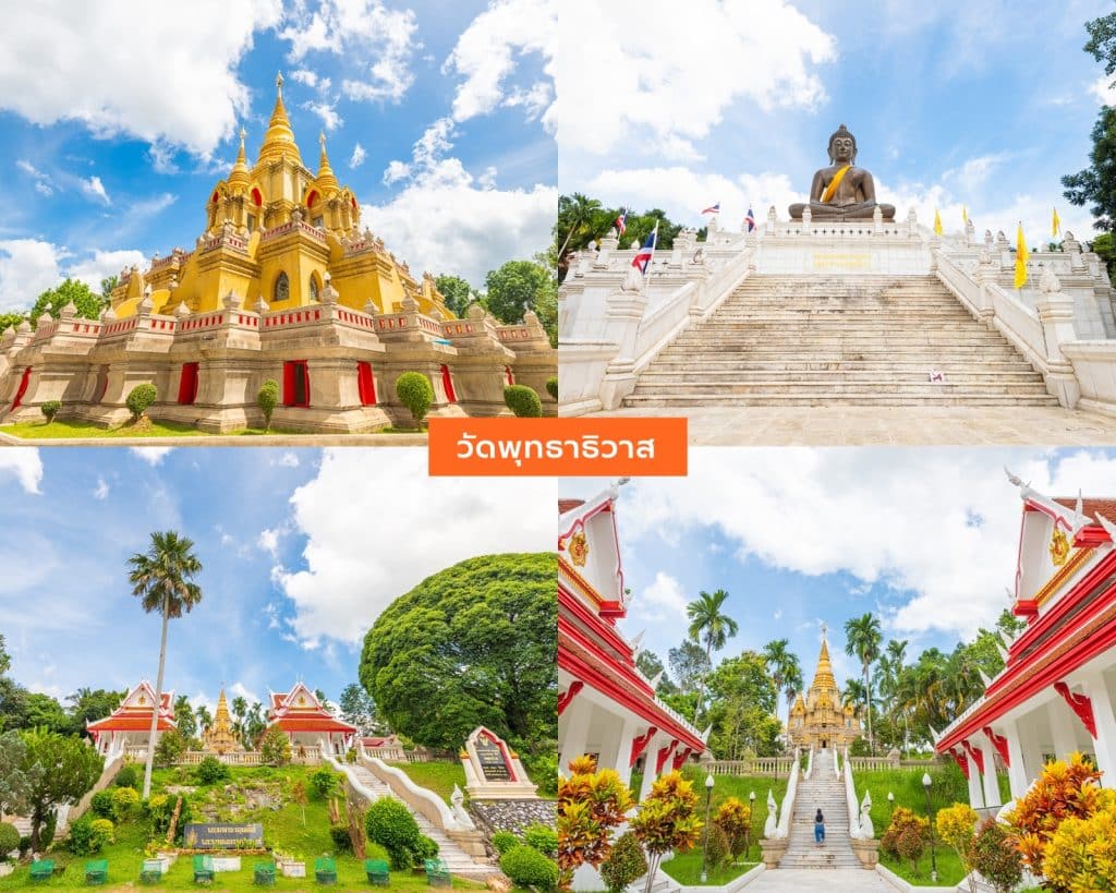 เป็นวัดพุทธที่สวยงามตั้งเด่นสง่าอยู่บนเนินเขา พระประธานในอุโบสถคือรูปเหมือนหลวงปู่ทวดเหยียบน้ำทะเลจืดขนาดเท่าองค์จริง ภายในวัดประดิษฐาน พระมหาธาตุเจดีย์พระพุทธธรรมประกาศ ก่อสร้างแบบศรีวิชัยประยุกต์ สีทองอร่าม มีความสูง 39.9 เมตร ภายในบรรจุพระบรมสารีริกธาตุ สร้างขึ้นเพื่อเฉลิมพระเกียรติสมเด็จพระนางเจ้าสิริกิติ์ พระบรมราชินีนาถ พระบรมราชชนนีพันปีหลวง ในโอกาสทรงเจริญพระชนมพรรษา 60 พรรษา จากบริเวณลานเจดีย์จะมองเห็นทัศนียภาพของวัดและเมืองเบตงในอีกมุมที่สวยงาม