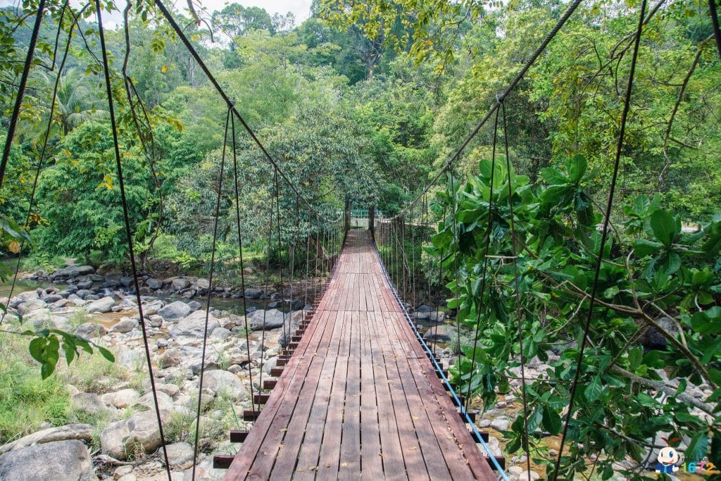 ส่วนใครอยากจะเดินเล่นรอบ ๆ บริเวณริมลำธาร มีสะพานแขวนให้เดินข้าม เชื่อว่าเป็นอีกหนึ่งจุดถ่ายรูปที่สวยงามไม่แพ้กันค่ะ