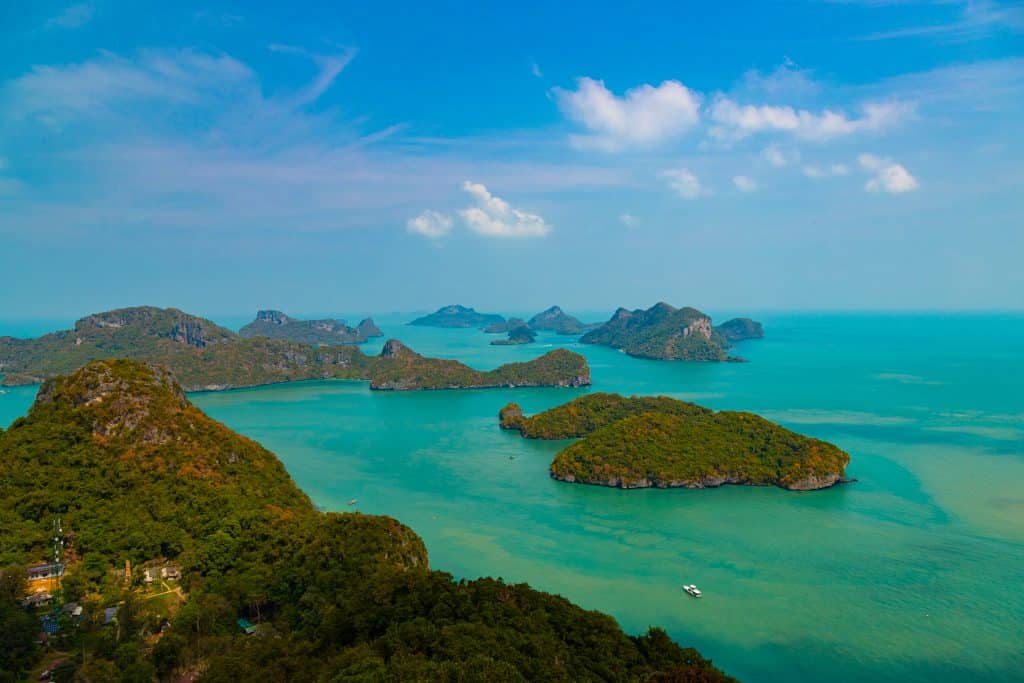 เมื่อเอ่ยถึงหมู่เกาะในทะเลฝั่งอ่าวไทย ภาพจำอันดับต้น ๆ ที่มักพบเห็นผ่านสื่อโซเชียลมีเดีย น่าจะเป็นภาพหมู่เกาะน้อยใหญ่เรียงรายอยู่กลางทะเลสีเขียวอมฟ้า หนึ่งในทัศนียภาพอันสวยงามของ “อุทยานแห่งชาติหมู่เกาะอ่างทอง” และเป็นที่มาของคำว่า “เมืองร้อยเกาะ” ซึ่งปรากฎอยู่ในคำขวัญประจำจังหวัดสุราษฎร์ธานี คือ “เมืองร้อยเกาะ เงาะอร่อย หอยใหญ่ ไข่แดง แหล่งธรรมะ”