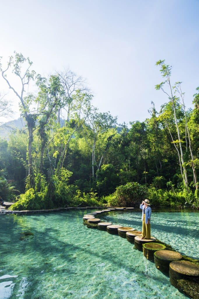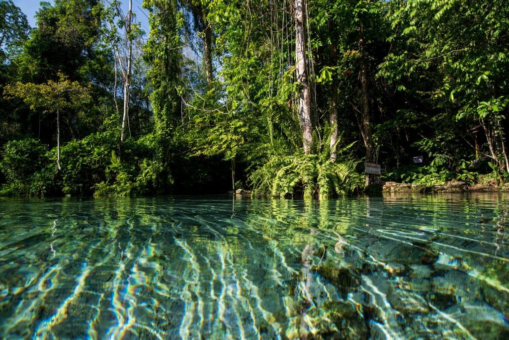 ชวนไปแหวกว่ายคลายร้อนในน้ำเย็นสดชื่นกลางบ่อน้ำสีฟ้าที่ใสราวกระจก โอบล้อมด้วยผืนป่าอุดมสมบูรณ์ที่ป่าต้นน้ำบ้านน้ำราด จังหวัดสุราษฎร์ธานี