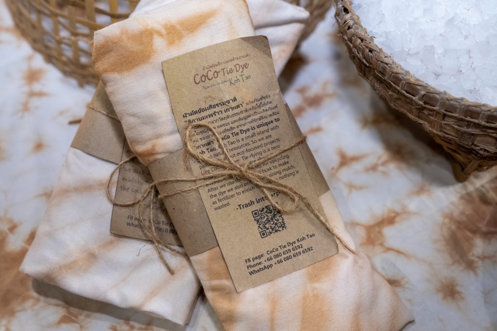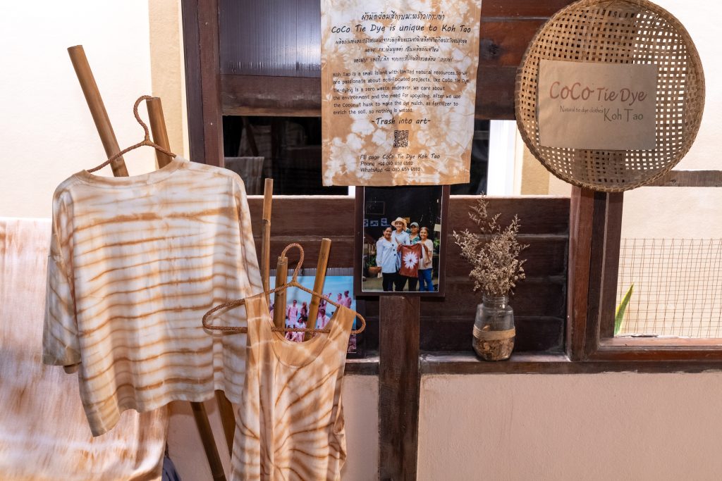 🥥🌴 บัดดี้ได้มีโอกาสพูดคุยกับพี่สุดใจระหว่างการทำกิจกรรม จึงได้ทราบถึงที่มาของนำกาบมะพร้าวมาใช้เป็นส่วนประกอบในการทำเวิร์กชอป เนื่องจากมะพร้าวได้ชื่อว่าเป็นพืชเศรษฐกิจของพื้นที่เกาะเต่ามาตั้งแต่อดีตจนถึงปัจจุบัน พี่สุดใจจึงปิ๊งไอเดียในการนำวัสดุเหลือใช้จากธรรมชาติ มาสร้างสรรค์ผลิตภัณฑ์ผ้าย้อมสีจากธรรมชาติที่แต่งแต้มด้วยลวดลายสวยงาม ประกอบด้วย ผ้าเช็ดหน้า ถุงผ้าแคนวาส และเสื้อลายผ้ามัดย้อมอีกมากมาย ซึ่งไอเดียนี้นอกจากจะช่วยสร้างมูลค่าเพิ่มให้กับผลิตภัณฑ์แล้ว ก็ยังเป็นองค์ประกอบสำคัญในการสนับสนุนแนวคิดการท่องเที่ยวอย่างรับผิดชอบต่อสังคม (Responsible Tourism) อีกด้วยละ