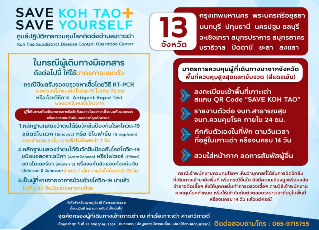 มาตรการการเข้าพื้นที่เกาะเต่า (เผยแพร่ วันที่ 24 ก.ค. 2564)
