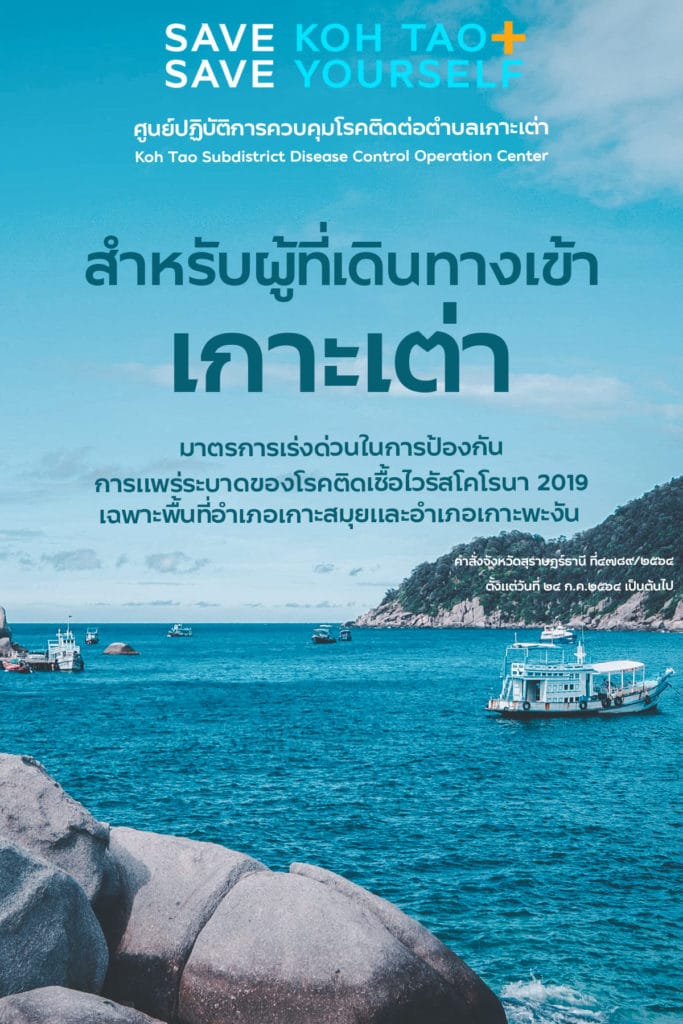 มาตรการปฏิบัติตน สำหรับบุคคลที่จะเดินทางเข้าในพื้นที ตำบลเกาะเต่า อำเภอเกาะพะงัน จังหวัดสุราษฎร์ธานี
