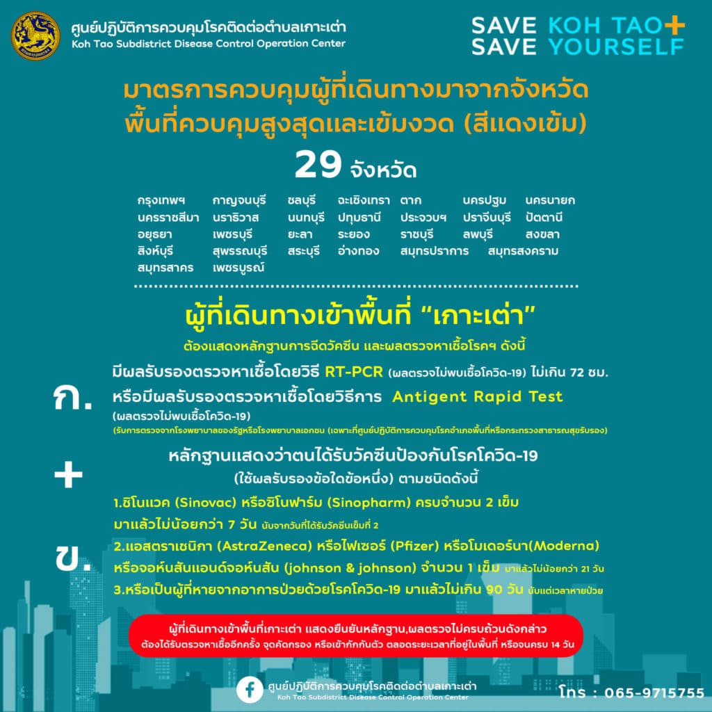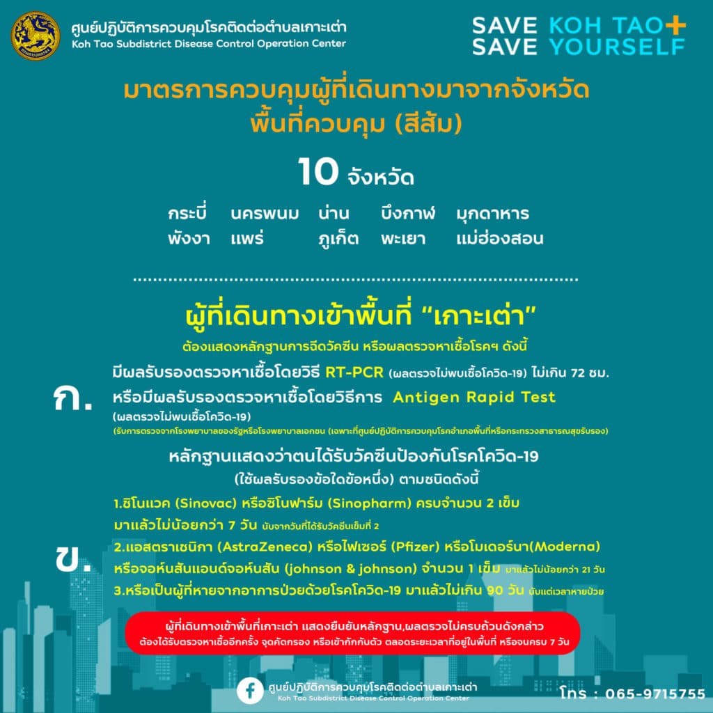 มาตรการสำหรับผู้ที่เดินทางเข้าเกาะเต่า (เผยแพร่ วันที่ 7 ส.ค. 2564)