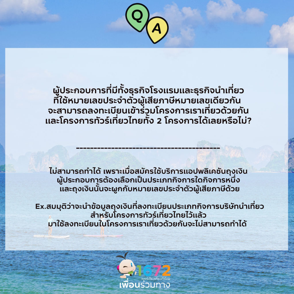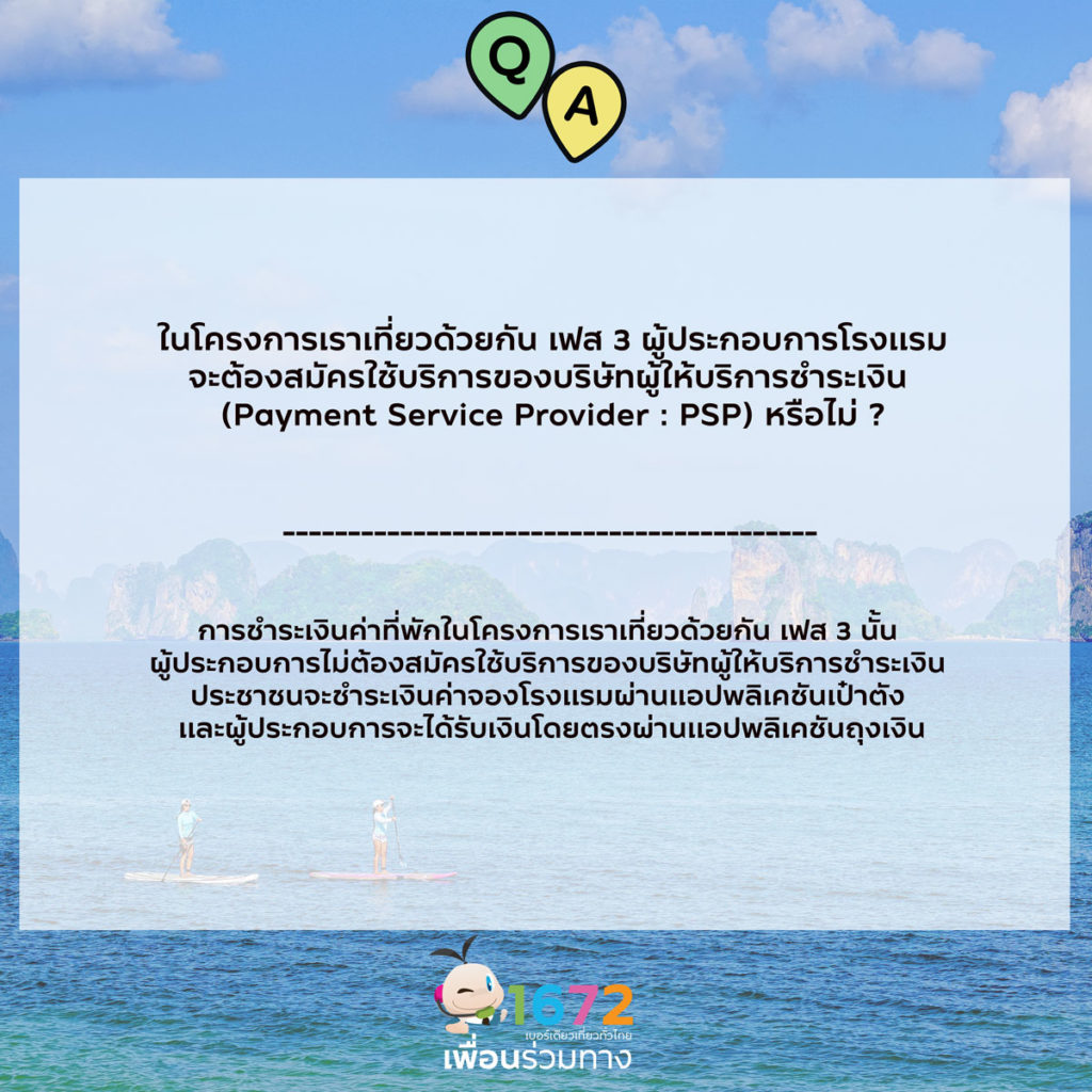 ถาม-ตอบ คลายข้อสงสัยโครงการเราเที่ยวด้วยกัน เฟส 3 EP 2 5 ต.ค. 2564 ถาม-ตอบ คลายข้อสงสัยโครงการเราเที่ยวด้วยกัน เฟส 3 EP 2โครงการเราเที่ยวด้วยกัน / By เพื่อนร่วมทาง / สถานที่ท่องเที่ยว / 05/10/2021 สำหรับเพื่อน ๆ ที่มีข้อข้องใจนอกเหนือจากที่แอดนำเสนอในบทความนี้ สามารถอ่านเพิ่มเติมได้จากบทความด้านล่างได้เลยถาม-ตอบ คลายข้อสงสัยโครงการเราเที่ยวด้วยกัน เฟส 3