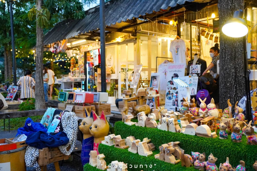 Food is a major feature at this market and is the star from the entrance until the riverfront where you will see vendors plying their trade on boats in the tradition of a floating market. Thai traditional music is performed for free during the day from 11:00 a.m. – 4:00 p.m. Join karaoke in the garden if you love to sing or listen to others!