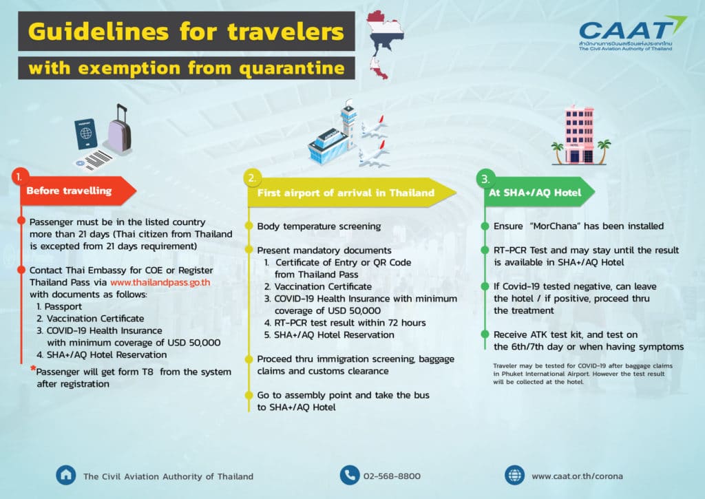 - ข้อแนะนำในการเดินทางเข้าประเทศไทย สำหรับผู้ที่ได้รับยกเว้นการกักตัว มีผลตั้งแต่ 1 พ.ย. 64 เป็นต้นไป