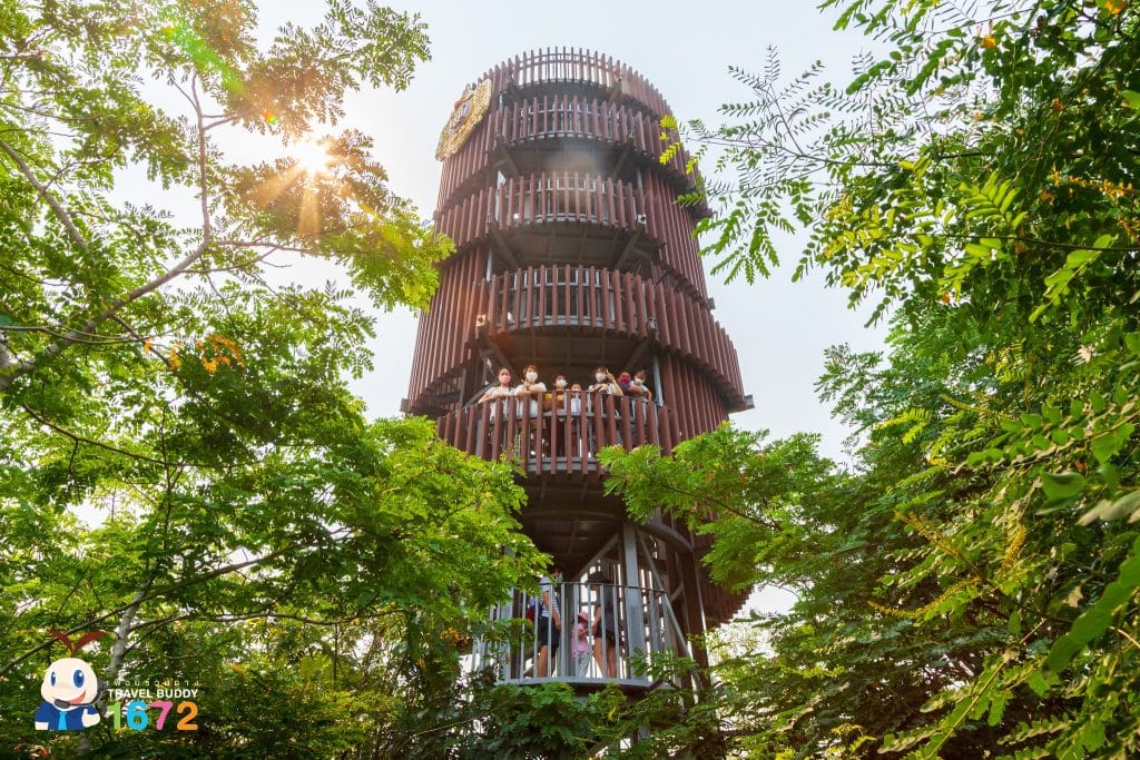 หอชมป่า (Observation Tower) เป็นจุดชมวิวมุมสูง มีความสูง 23 เมตร นับว่าเป็นหนึ่งในไฮไลท์ของที่นี่ เมื่อขึ้นไปแล้วเราก็จะได้เห็นบรรยากาศของกรุงเทพฯ แบบ 360 องศาเลยล่ะ