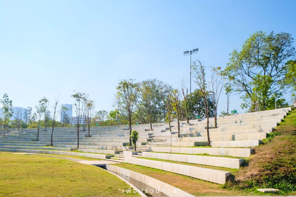 บริเวณนี้เป็นลานสนามหญ้าและอัฒจันทร์กลางแจ้งไว้สำหรับทำกิจกรรมต่าง ๆ  อัฒจันทร์รองรับกิจกรรมของผู้ใช้งานได้ถึง 15,000 คนเลยทีเดียว