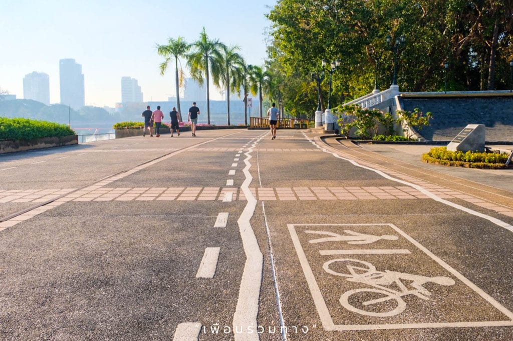 บริเวณโดยรอบสวนน้ำ เป็นจุดที่ผู้คนมักจะมาออกกำลังกายกัน มีทั้งคนเดิน วิ่ง หรือใครชอบปั่นจักรยานก็มีเส้นทาง Bike Lane สำหรับปั่นจักรยาน แม้จะอยู่กลางเมือง มองเห็นวิวตึกสูงโดยรอบ แต่ก็ยังได้เห็นสีเขียวจากต้นไม้ใหญ่น้อยของสวน สวยไปอีกแบบ เข้ามาเดินเล่นหรือออกกำลังกายเบา ๆ แบบนี้เหมือนได้มาชาร์จพลังจากธรรมชาติเลยค่ะ