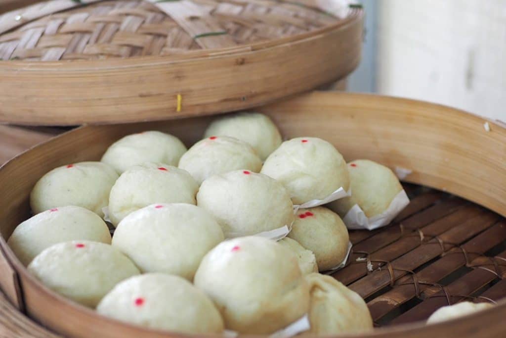ตัวร้านตั้งอยู่ใกล้ ๆ แยกหมอมี โดยซาลาเปาร้านนี้เป็นสูตรโบราณที่คงความดั้งเดิมมากว่า 90 ปี แถมยังปั้นด้วยมือทุกลูก แป้งซาลาเปาของร้านนี้จะผสมมันเทศเข้าไปด้วย ทำให้มีความเหนียวหนึบ กินแล้วเศษแป้งไม่ติดฟัน มีไส้หมูสับไข่เค็ม ถั่วหวานงา เผือกกวนเเละหมั่นโถว ราคาเริ่มต้นที่ 20 บาท/ลูก