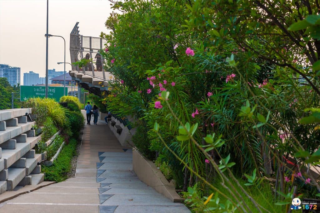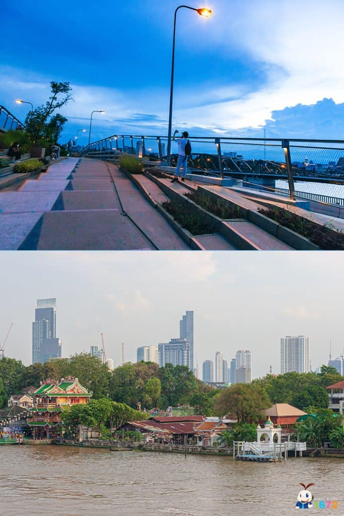 ในสวนสาธารณะแห่งนี้ มีทางเดินและเลนจักรยาน ระยะทางกว่า 280 เมตร รวมไปถึงลิฟต์สำหรับผู้พิการและผู้สูงอายุ เพื่อให้ทุกคนสามารถมาใช้บริการได้ทุกเพศทุกวัย ที่สำคัญที่นี่ยังเป็นจุดชมวิวแม่น้ำเจ้าพระยาที่สวยที่สุดอีกจุดของกรุงเทพฯ แถมยังมองเห็นพระปรางค์วัดอรุณฯ พระบรมธาตุมหาเจดีย์ที่วัดประยุรฯ วัดซางตาครู้ส ชุมชนกุฎีจีน สะพานพุทธฯ ไอคอนสยาม ยิ่งช่วงเย็น จะมีทั้งลมเย็น ๆ และวิวพระอาทิตย์ลับขอบฟ้าให้ชม รับรองได้ว่ามาแล้วประทับใจแน่นอน