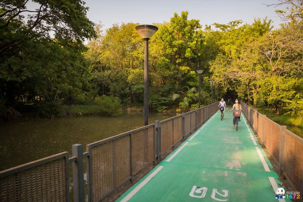 ที่นี่แบ่งเป็น 2 ส่วน คือ สวนน้ำและสวนป่า บริเวณโดยรอบสวนน้ำ เป็นจุดที่ผู้คนมักจะมาออกกำลังกายกัน มีทั้งคนเดิน วิ่ง หรือใครชอบปั่นจักรยานก็มีเส้นทาง Bike Lane สำหรับปั่นจักรยาน