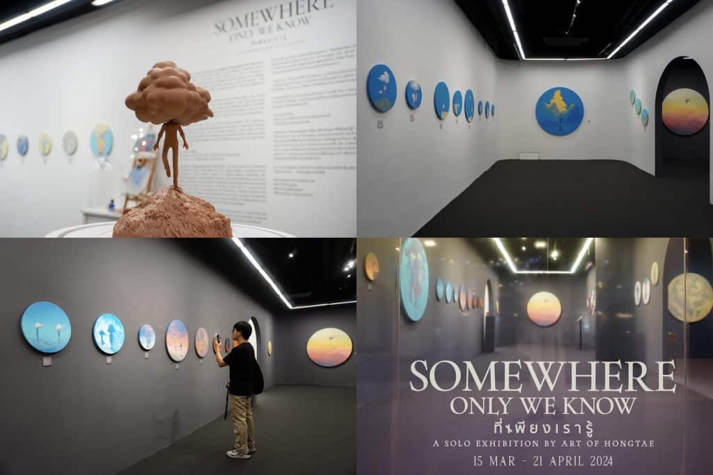 เดินทางเข้าสู่จักรวาลสีหวานอมเศร้า ไปสัมผัสกับโลกกึ่งจริง กึ่งฝัน กึ่งสุข กึ่งเศร้า มีเพียงเราเท่านั้นที่รู้สึก ‘ที่เพียงเรารู้’ นิทรรศการเดี่ยวครั้งแรกของ Art of Hongtae ศิลปินผู้ลากพู่กัน ลงสีสันบนผลงาน 66 ภาพในนิทรรศการภายใต้ชื่อ SOMEWHERE ONLY WE KNOW ที่จะมาถ่ายทอดหลากหลายความรู้สึกแก่ผู้ชม ผ่านตัวตนของ ‘คนหัวเมฆ’ ผู้ที่ไม่เคยเปิดเผยใบหน้าให้ใครรับรู้ และไม่อาจรับรู้ได้ว่าเขารู้สึกอย่างไร