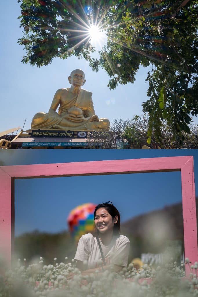 ไปกันต่อที่ พุทธอุทยานอาณาจักรหลวงพ่อทวด สักการะหลวงพ่อทวดเขาใหญ่ องค์ที่ใหญ่ที่สุดในโลก เสริมความสิริมงคล นอกจากนี้พุทธอุทยานหลวงพ่อทวดยังมีสิ่งศักดิ์สิทธิ์ให้กราบไหว้บูชา ถึง 9 จุด และสามารถถ่ายรูปกับทุ่งดอกไม้ นั่งจิบกาแฟกันได้ที่สวนสันป่ายะ