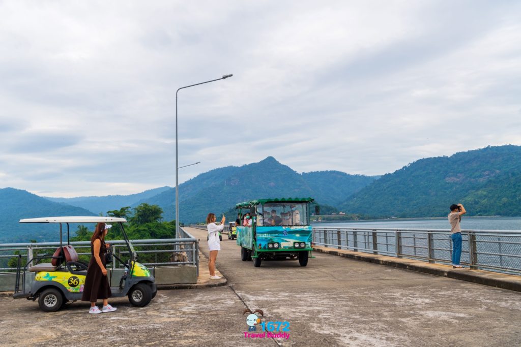 ถนนขึ้นสันเขื่อนยังเป็นเส้นทางที่นักปั่นจักรยานชื่นชอบ เพราะมีความชันไม่มาก ปั่นไม่ยากเกินไป แต่ถ้าใครไม่ชอบปั่นจักรยาน ที่นี่ก็มีรถรางชมวิวให้บริการ นั่งได้ไม่เกิน 30 คน ค่าบริการคนละ 30 บาท ใช้เวลาไปกลับประมาณ 20 นาที ติดต่อซื้อตั๋วได้ที่จุดบริการรถราง บริเวณลานจอดรถบนสันเขื่อน