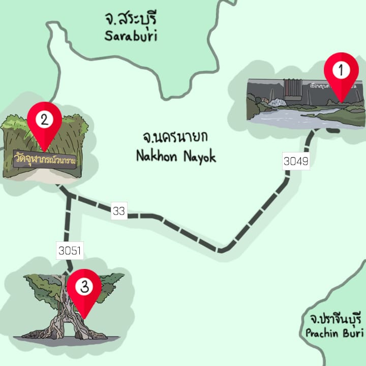 สำหรับคนที่มีเวลาเพียงแค่ 1 วันในช่วงวันหยุดสุดสัปดาห์ และอยากไปเที่ยวธรรมชาติที่สวยงามใกล้ ๆ กรุงเทพฯ แอดมีตัวเลือกหนึ่งมาแนะนำ นั่นก็คือจังหวัดนครนายก เดินทางจากกรุงเทพฯเพียงแค่ 2 ชั่วโมงเท่านั้น และเนื่องจากช่วงนี้อากาศร้อนอบอ้าว แอดก็จะเน้นสถานที่ท่องเที่ยวที่ร่มรื่น เย็นสบาย เพื่อช่วยคลายร้อนกัน ไปดูว่าทริปนี้เราไปไหนบ้าง