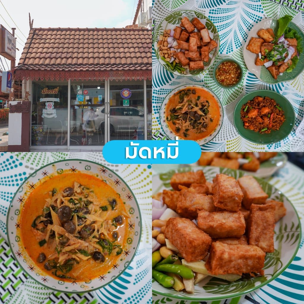 แกงคั่วเห็ดเผาะปลากราย น้ำแกงเข้มข้นเขาถึงกะทิ รสหวานนำ เห็ดเผาะซึ่งเป็นวัตถุดิบที่หายาก ราคาสูงและต้องทำให้สะอาด แต่ทางร้านมัดหมี่นั้นก็เสิร์ฟได้อย่างอร่อยในราคาจับต้องได้