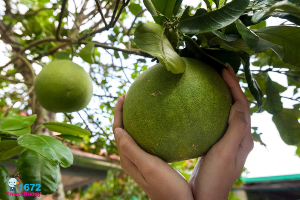 ที่นี่มีสวนส้มโอปลอดสารพิษด้วยนะ ลูกใหญ่มาก ๆ เพราะในชุมชนจะทำเกษตรแบบธรรมชาติ ไม่ใช้สารเคมี จนได้คัดเลือกให้เป็นชุมชนต้นแบบพึ่งตนเองดีเด่น ชุมชนเข้มแข็งเขียวขจีดีเด่น และรางวัลอุตสาหกรรมท่องเที่ยวไทยจากการท่องเที่ยวแห่งประเทศไทยถึง 5 สมัยเลยทีเดียว