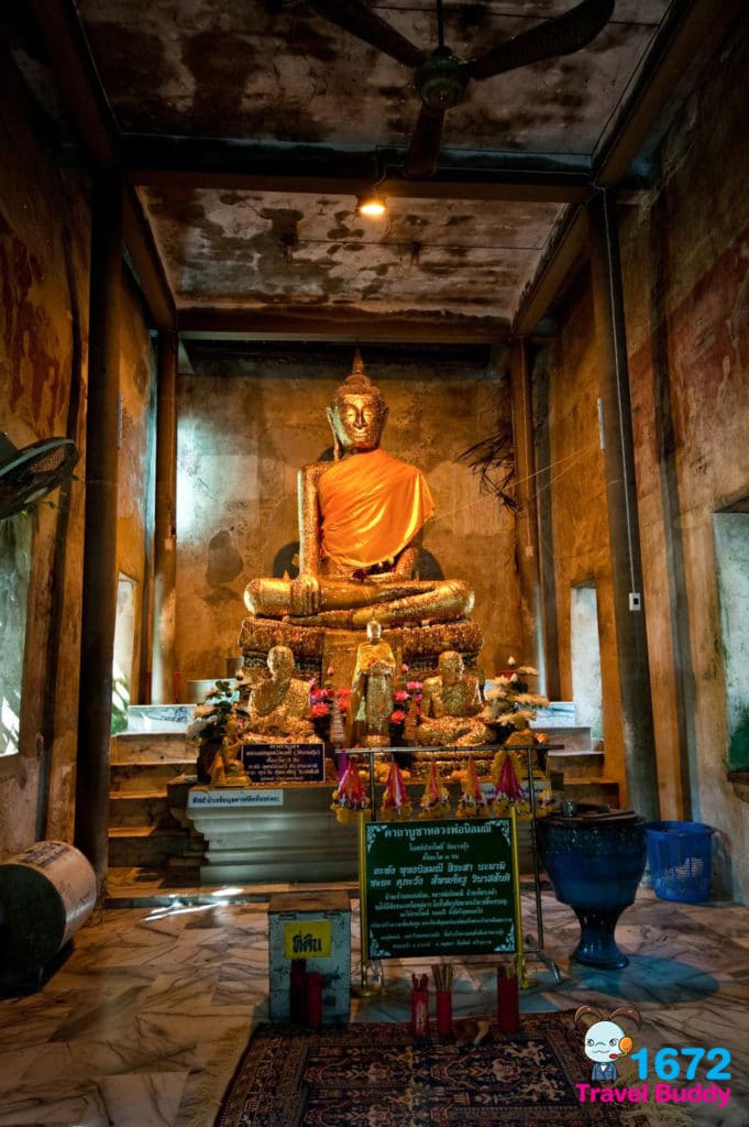 สำหรับไฮไลท์ที่นี่คือ โบสถ์เก่าแก่สมัยกรุงศรีอยุธยา เป็นโบสถ์ที่มีต้นไม้ใหญ่ปกคลุมบนหลังคาโบสถ์ถึง 4 ชนิดด้วยกัน นั่นคือ ต้นโพธิ์ ต้นไทร ต้นไกร และต้นกร่าง หรือที่รู้จักชื่อว่า “โบสถ์ปรกโพธิ์” นั่นเอง