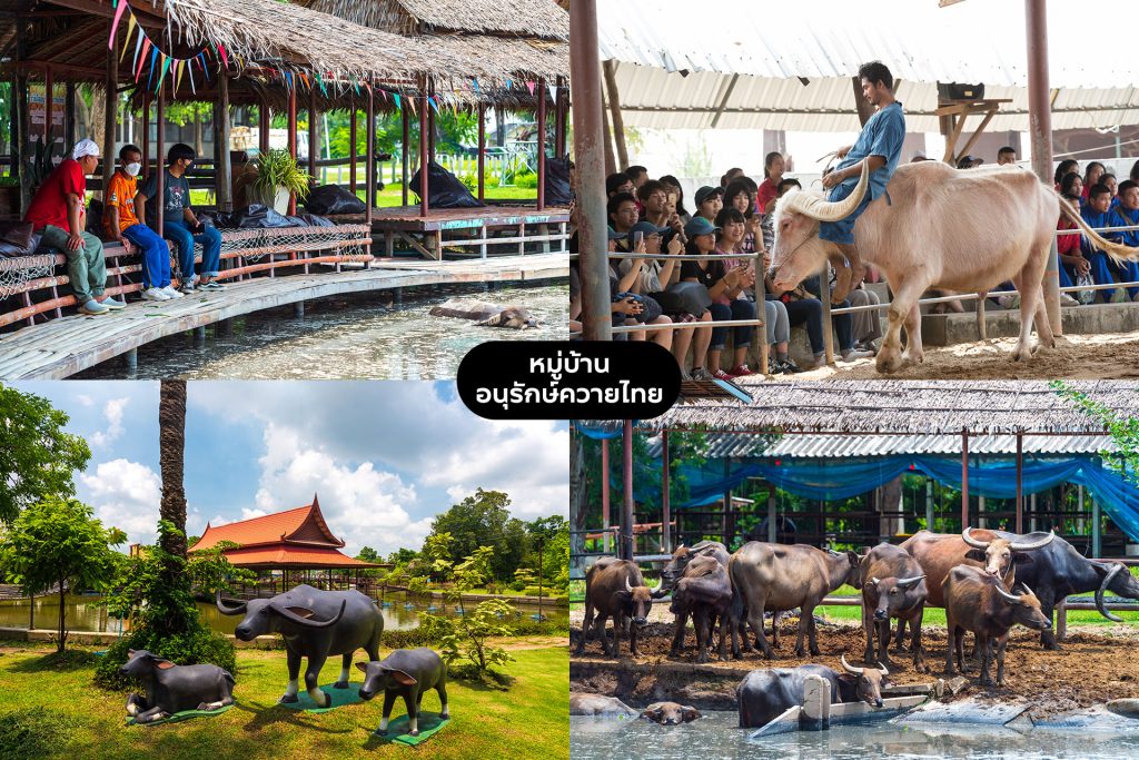 แหล่งท่องเที่ยวเชิงอนุรักษ์วัฒนธรรมไทยที่หลายคนรู้จักในชื่อ “บ้านควาย” เพราะมีควายไทยกว่า 80 ตัว และเน้นบอกเล่าเรื่องราวของควายกับนาข้าว พาเราย้อนเวลาไปสัมผัสกับวิถีชีวิตและความผูกพันของคนไทยสมัยก่อนกับควายและท้องนา แบ่งเป็นโซนบ้านไทยรีสอร์ต หมู่บ้านชาวนา พิพิธภัณฑ์ขนาดเล็ก ลานแสดงควายยิ้ม และคาเฟ “กินแฟ ดูฟาย” ที่ไม่เหมือนใคร ชวนไปเพลิดเพลินไปกับการจิบกาแฟท่ามกลางน้องควายที่เล่นน้ำอยู่รอบ ๆ