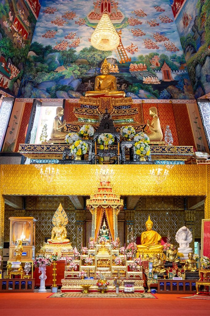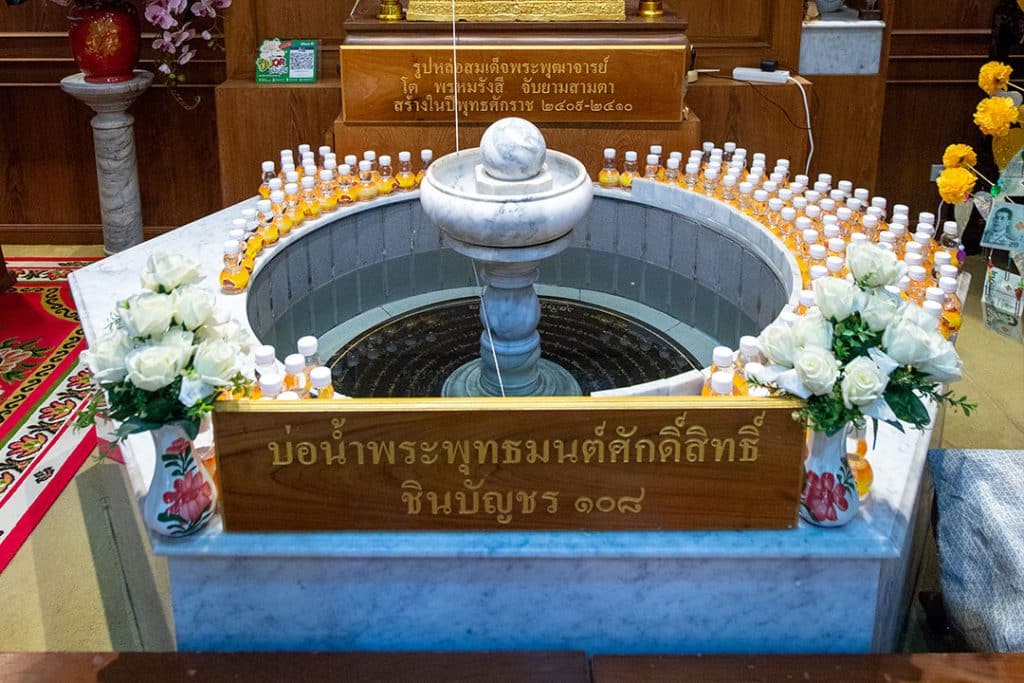ภายในวัด มีสิ่งศักดิ์มากมายให้กราบไหว้ โดยบัดดี้ขอเริ่มจากอุโบสถด้านล่าง ซึ่งเป็นที่ประดิษฐานพระบรมสารีริกธาตุและรูปหล่อสมเด็จพระพุฒาจารย์โต พรหมรังษี นั่งนับนิ้วหรือจับยามสามตา ตั้งอยู่บนบ่อน้ำมนต์ศักดิ์สิทธิ์ ซึ่งผู้มาเยือนสามารถนำน้ำมนต์กลับไปได้