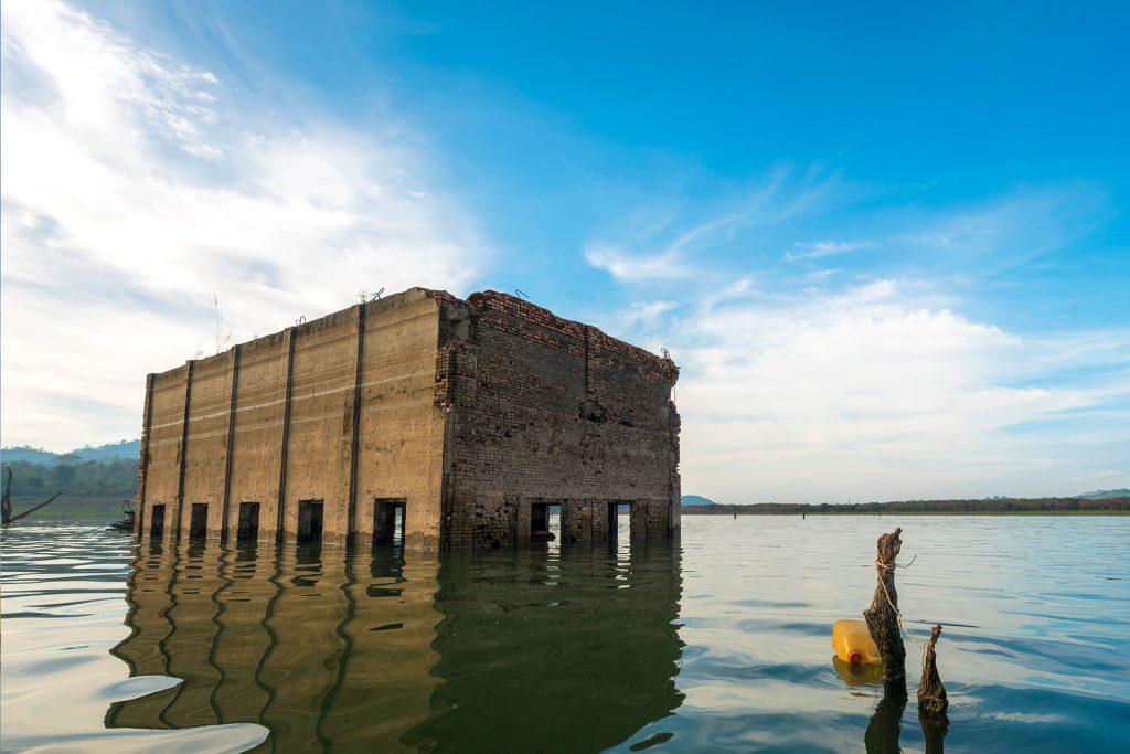 ในตัว อ.สังขละบุรี ในอดีตที่นี่คือหมู่บ้านของชาวสังขละบุรี ก่อนจะมีการสร้าง เขื่อนเขาแหลม (เขื่อนวชิราลงกรณ์) ในปี พ.ศ. 2527 ซึ่งหมู่บ้านเป็นส่วนหนึ่งของพื้นที่กักเก็บน้ำ จึงได้อพยพชาวบ้านออก เหลือเพียงอาคารและวัดที่จมอยู่ใต้น้ำเป็นเมืองบาดาลในปัจจุบัน