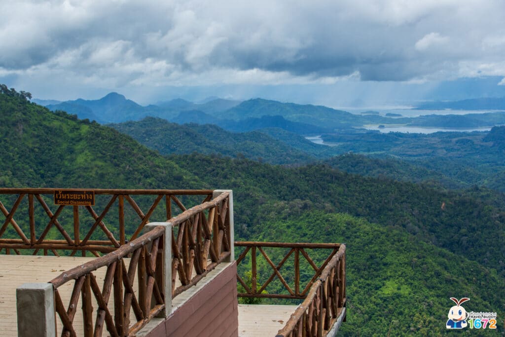 แน่นอนว่าจุดพักแรมไม่ได้มีแค่ต้นไม้รายล้อม แต่ยังมีจุดชมวิวให้เพื่อน ๆ ได้ชม ตรงนี้เรียกว่า “เนินกูดดอย-ช้างเผือก” เพื่อน ๆ สามารถมองเห็นวิวของทะเลสาบเขื่อนวชิราลงกรณ และเขาช้างเผือกได้จากตรงนี้เลยล่ะ