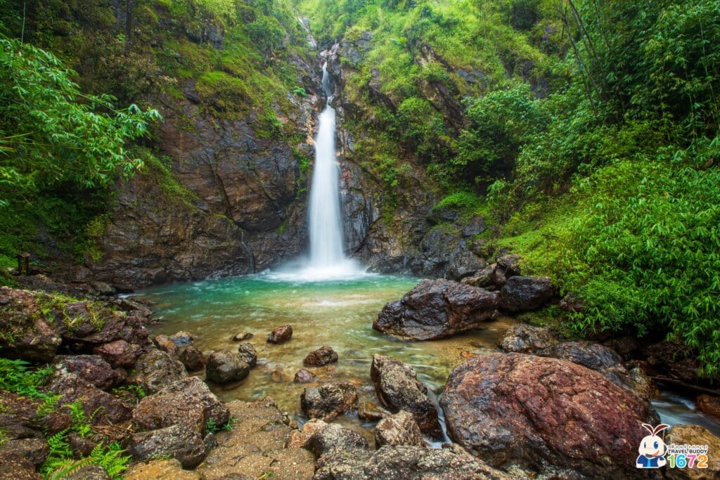 หลังจากนำรถมาจอดที่จุดทางเข้าน้ำตกแล้ว จะต้องเดินเท้าอีก 2 กิโลเมตร เพื่อเข้าไปที่น้ำตก ถ้าได้มาในช่วงหน้าฝนแบบนี้ มีน้ำให้เล่นมากพอเลยล่ะ
