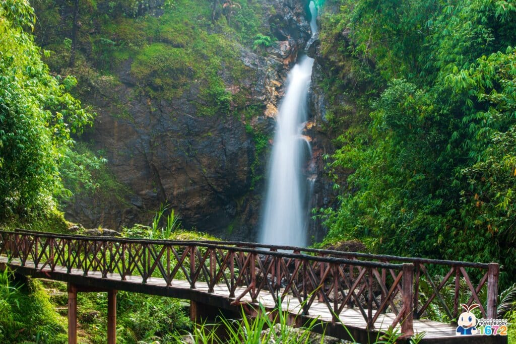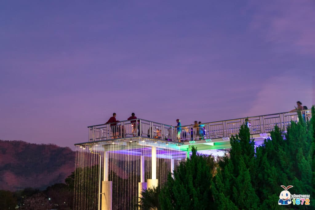สุดขอบทางเดินสกายวอล์กมีม่านน้ำตกอันสวยงาม ถ้ามาที่นี่ในยามค่ำคืน เพื่อน ๆ ก็จะได้ชมไฟที่ประดับรอบ ๆ สกายวอล์กด้วย หากนึกภาพไม่ออก แอดมีภาพบรรยากาศตอนค่ำ ๆ มาให้ชมกัน