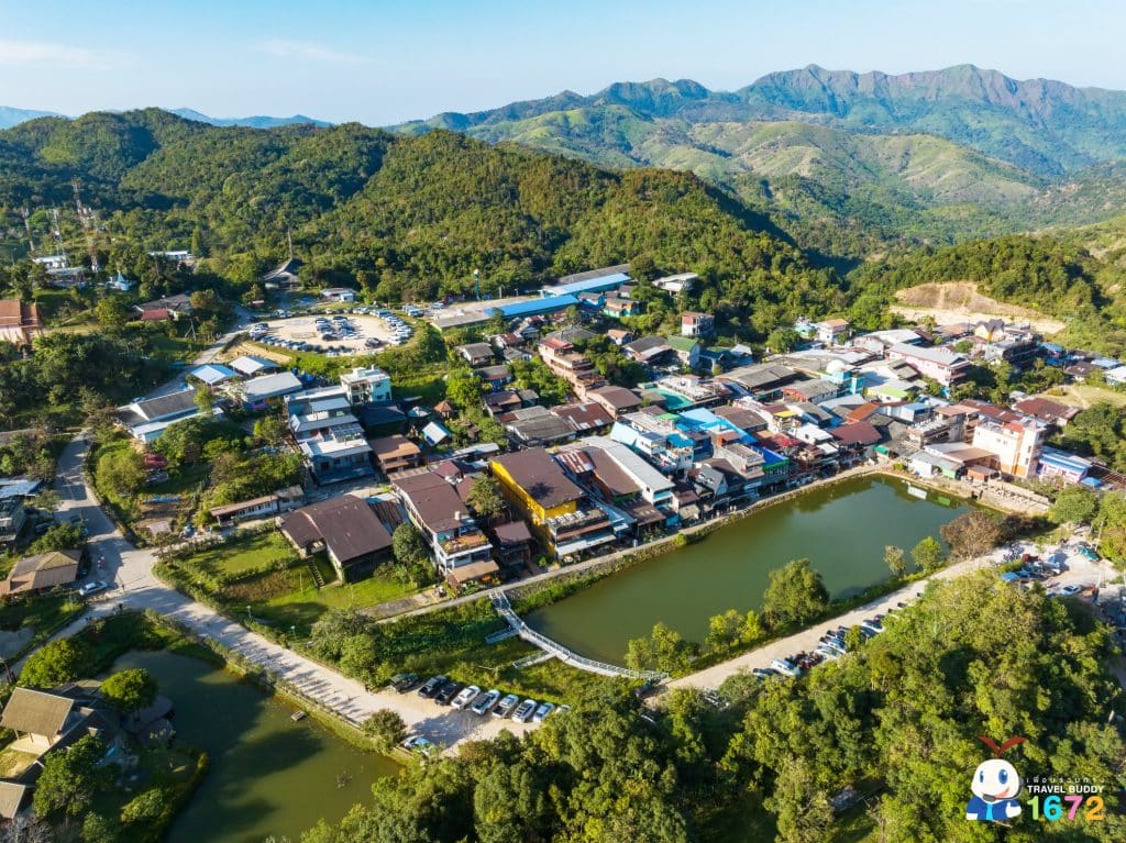 จากด้านบนเราจะเห็นหมู่บ้านอิต่องที่อยู่ห่างออกไปไม่ไกล หากอยากพักค้างแรม ด้านบนไม่อนุญาตให้ค้างนะคะ แต่สามารถพักโฮมสเตย์ที่หมู่บ้านอีต่องให้เลือกหลายเจ้า