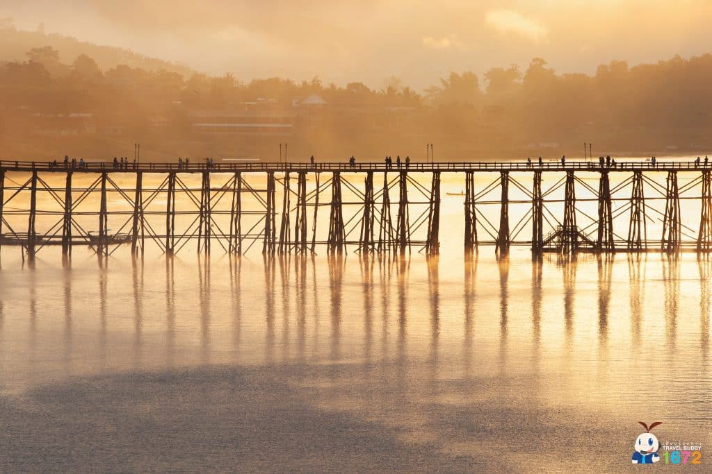 ที่อำเภอสังขละบุรีมีกิจกรรมให้เราทำได้หลากหลาย ไม่ว่าจะเป็นเดินข้ามสะพานมอญหรือสะพานอุตตมานุสรณ์ สะพานไม้ที่ยาวที่สุดของไทย มีความยาวถึง 850 เมตร ที่ทอดข้ามแม่น้ำซองกาเรีย หรือจะล่องเรือชมพระอุโบสถกลางน้ำ ก็เป็นอีกหนึ่งกิจกรรมที่ห้ามพลาด