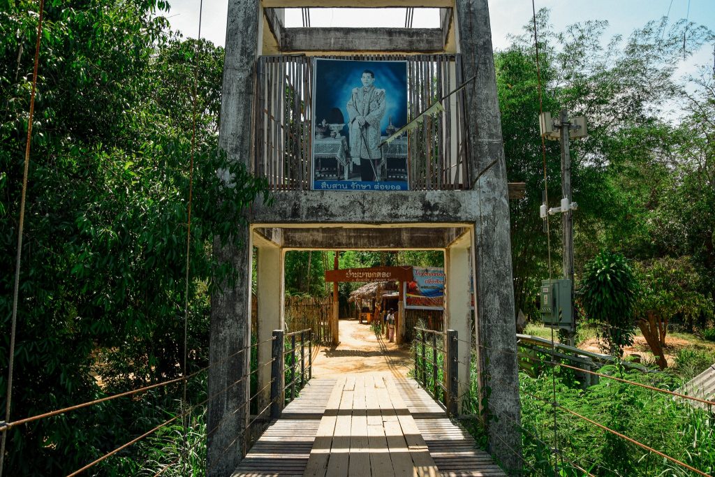 7. หลังขึ้นจากแพบริเวณสะพานแขวน สามารถเดินขึ้นไปชมทิวทัศน์บนสะพานแขวนได้ และเดินข้ามสะพานไปอีกฝั่งจะเป็นหมู่บ้านบางกลอย สามารถเดินเที่ยวชมในหมู่บ้านได้ มีร้านขายชากาแฟ ร้านจำหน่ายสินค้าที่ระลึกชุมชน เช่น ผ้าทอ เสื้อชาวปกาเกอะญอ พวงกุญแจ พริกแห้ง เป็นต้น