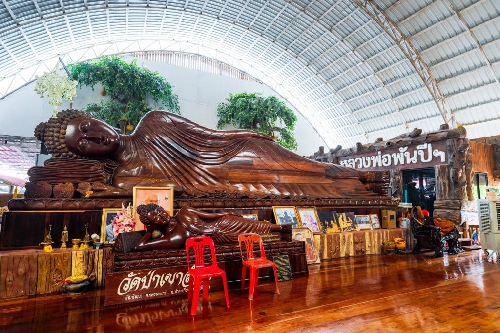 วัดสร้างขึ้นอยู่กลางป่ามีภูเขาล้อมรอบภายในวัดมีพระพุทธรูปปางต่างๆที่แกะสลักจากไม้ตะเคียนทองที่ขุดพบจมอยู่ใต้ดินลึกกว่า 5 เมตร ขณะสร้างเขื่อนสียัด ได้แก่ หลวงพ่อพันปีศรีตะเคียนทอง เป็นพระพุทธรูปปางไสยาสน์ มีความสูง 3 เมตรยาว 10 เมตรหลวงพ่อพุทธบูรพามหาบารมีและได้พบว่าไม้จำนวนหนึ่งได้กลายเป็นหินไปแล้วจึงสันนิษฐานว่าไม้ตะเคียนคงมีอายุนับเป็นพันปี และพระพุทธรูปปางตรัสรู้ที่มีขนาดหน้าตักถึง 109 นิ้ว ปางปรินิพพานมีความยาว 10 เมตร สูง 3 เมตร
