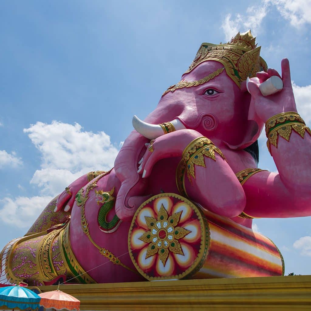 เป็นพระพิฆเนศองค์สีชมพูปางไสยาสน์คเณศ หรือปางนอนเสวยสุข องค์ใหญ่ที่สุดในประเทศไทย ลักษณะนั่งกึ่งตะแคงบนฐาน พระหัตถ์ซ้ายถืองาที่หัก พระหัตถ์ขวาถือดอกบัว มีความสูงถึง 16 เมตร ยาว 24 เมตร นักท่องเที่ยวหรือผู้ศรัทธาส่วนใหญ่ ขอพรเรื่องเงิน ทอง ขอให้ไหลมาเทมา มีโชคลาภ กินอิ่มนอนหลับ มีกินมีใช้สม่ำเสมอ