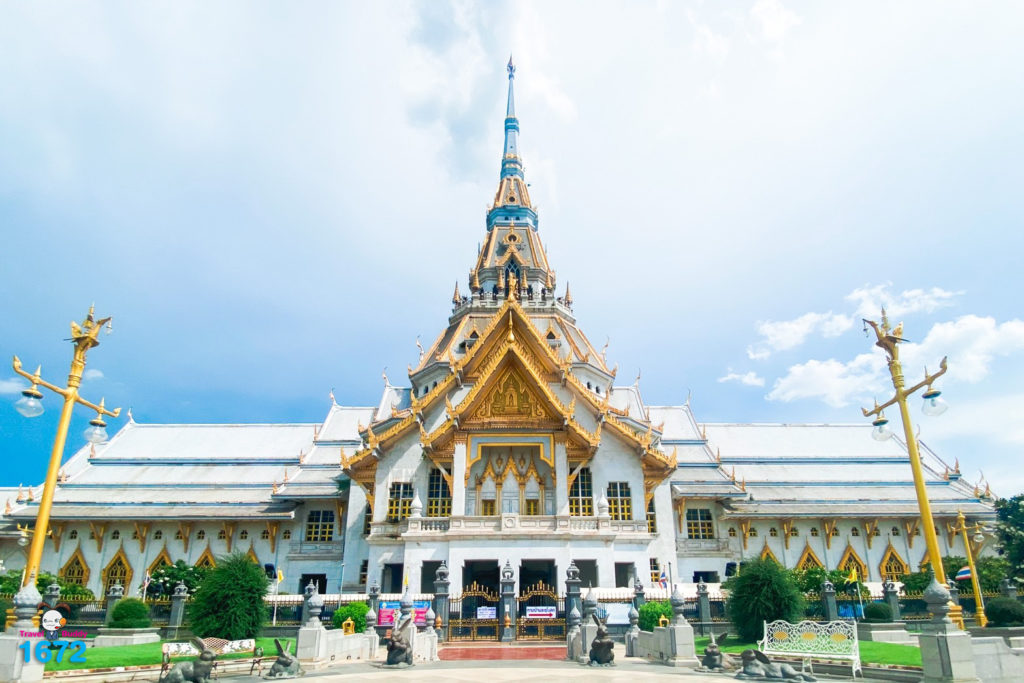 เพราะเราจะได้ชมพระอุโบสถขนาดใหญ่ ที่ถูกสร้างเป็นทรงมหาเจดีย์สีเหลืองทองและมีเจดีย์องค์เล็กอีก 2 องค์ ตั้งขนาบด้านข้าง ซึ่งเป็นสถาปัตยกรรมการผสมผสานระหว่างศิลปะไทย อินเดียและศรีลังกา จึงทำให้ลักษณะพระอุโบสถของที่นี่มีความพิเศษไม่เหมือนกับอุโบสถที่ไหน อีกทั้งภายในบริเวณวัดยังมีองค์พระพิฆเนศปางนั่งประธานพรองค์ใหญ่ที่สามารถมองเห็นมาได้แต่ไกลอีกด้วย