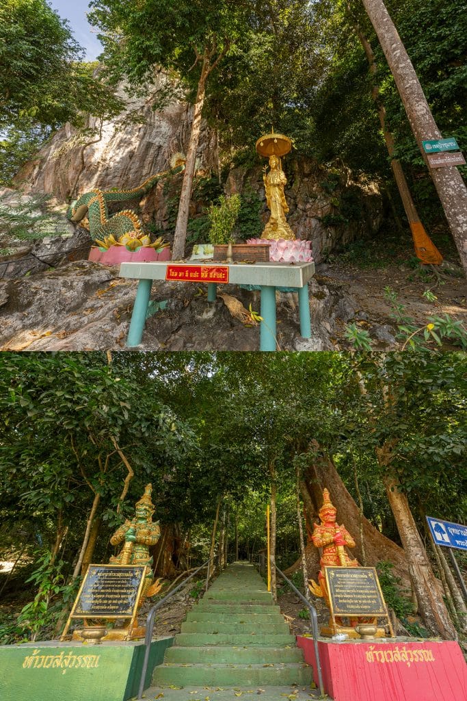 “ถ้ำลับแล 1” มาทางด้านซ้าย เมื่อเดินออกมาจะพบกับทางเดินสวยงาม นำไปสู่ลานกว้างที่มีพระพุทธรูปปางนาคปรกประดิษฐานอยู่ สามารถกราบไหว้ขอพรได้