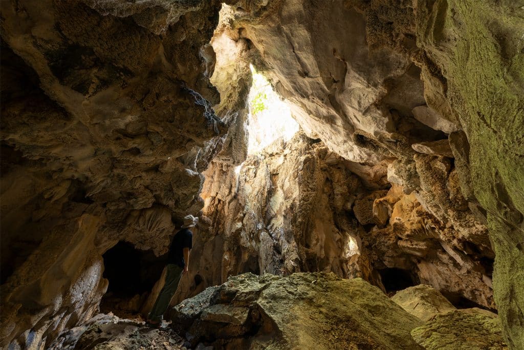 ทางเดินขึ้นถ้ำเดินได้ไม่ยาก เมื่อเดินถึงโถงถ้ำ เพื่อน ๆ จะพบกับลานกว้างที่จุได้นับพันคน เพดานถ้ำสูงมาก มีรูแสงที่ลอดลงมาให้เห็นหินงอกหินย้อยที่สวยงามได้
