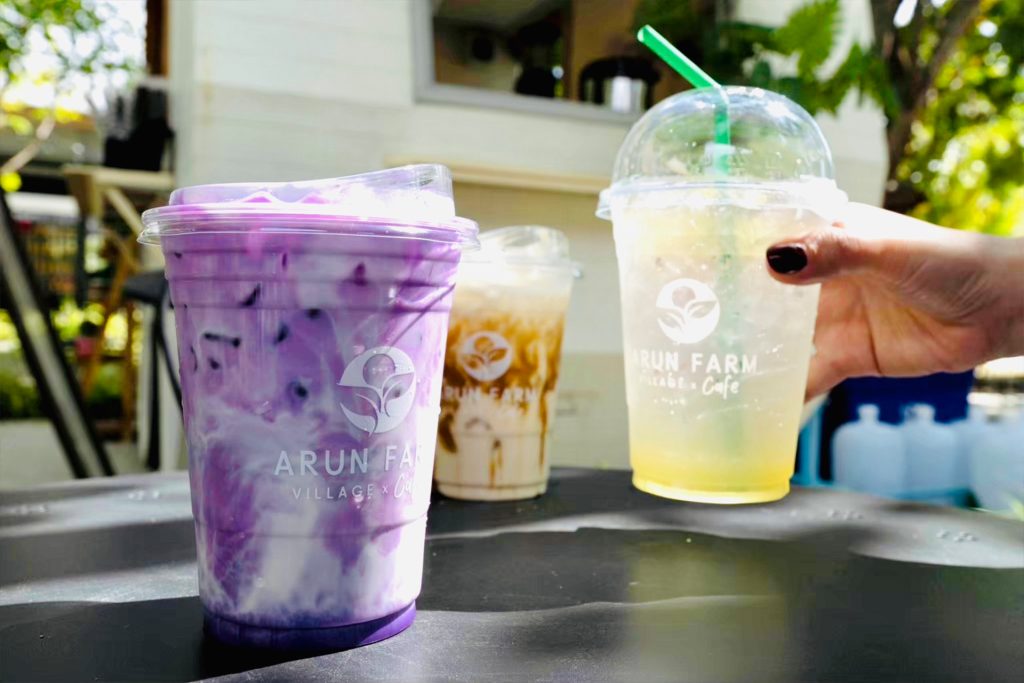 นอกจากนี้ระหว่างทำกิจกรรมสามารถมาเติมพลังได้ที่ คาเฟ่อรุณฟาร์ม มีเครื่องดื่มหลากหลายชนิดให้เพื่อน ๆ ได้เลือกทานค่ะ
