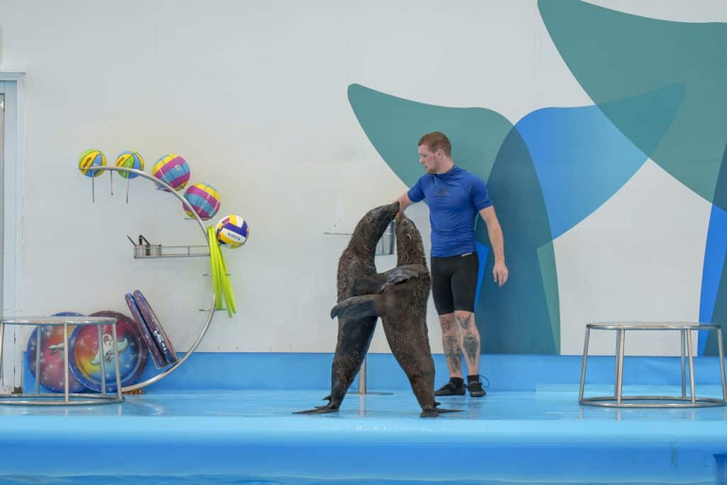 ในโชว์มีทั้งโลมาและแมวน้ำแสนรู้ มาร่วมแสดง ที่ทั้งกระโดด เล่นบอล เต้นตามจังหวะเพลง เป็นการแสดงที่ทำให้บัดดี้หัวเราะและตื่นเต้นตลอดเวลา นอกจากนี้ยังมีช่วงที่เล่นกับครูฝึก ที่ดูแล้วอบอุ่นใจมาก เหมือนเห็นความผูกพันจริง ๆ ระหว่างคนกับสัตว์ หลังโชว์จบ เพื่อน ๆ สามารถถ่ายรูปกับโลมาได้แบบใกล้ชิดสุด ๆ