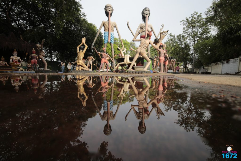 ส่วนสุดท้ายเป็นแดนนรก ในส่วนนี้จะโดดเด่นที่สุด เพราะมีรูปปั้นของเปรต รูปร่างสูงใหญ่มองเห็นได้ชัดเจน รวมทั้งรูปปั้นที่แสดงบทลงโทษคนทำผิดศีลอีกมากมาย ทั้งนี้เพื่อเป็นเครื่องเตือนสติให้คนละอายต่อการทำบาป ทางวัดแนะนำให้เดินเข้าทางนรกและออกทางสวรรค์เพื่อความเป็นสิริมงคล