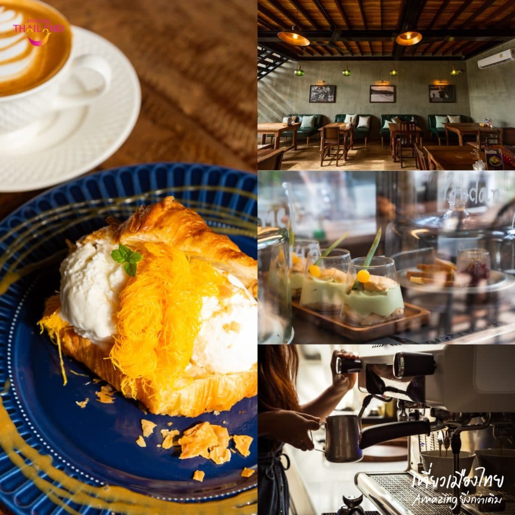 คาเฟ่สุดน่ารักบนเกาะสีชัง ตกแต่งสไตล์วินเทจ มีมุมถ่ายรูปสวย ๆ สิบล้านมุม เมนูเครื่องดื่มและขนมหวานเป็นแบบโฮมเมด รสชาติอร่อยมาก เมนูที่เราอยากแนะนำคือ สุรัมภาครัวซองต์ เป็นครัวซองต์สูตรพิเศษ สอดไส้ด้วยไอติมกะทิ และท้อปปิ้งด้วยฝอยทอง อร่อยมากคุณผู้ชม! มาเกาะสีชังห้ามพลาดร้านนี้เด็ดขาด