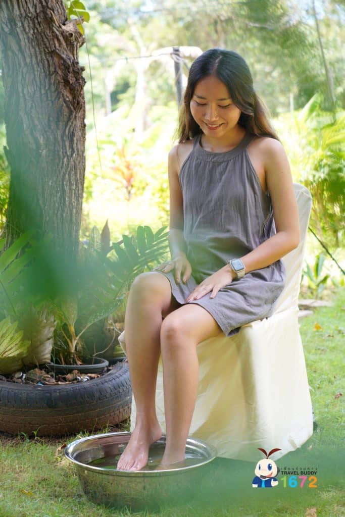 ถ้าเพื่อน ๆ ไม่อยากทำสปาทรายแดงก็สามารถทำสปาเท้าสมุนไพรได้ ใช้เวลาประมาณ 20 นาที โดยแช่เท้าในน้ำที่ผสมผสานสมุนไพรหลายขนาน เช่น ไพล บรรเทาการปวดเมื่อย ใบมะขาม ลดอาการคัน ดับกลิ่นเท้า ใบบัวบก ลดอาการบวม โดยมีเกลือ ช่วยให้สมุนไพรเข้าสู่ร่างกาย เป็นต้น