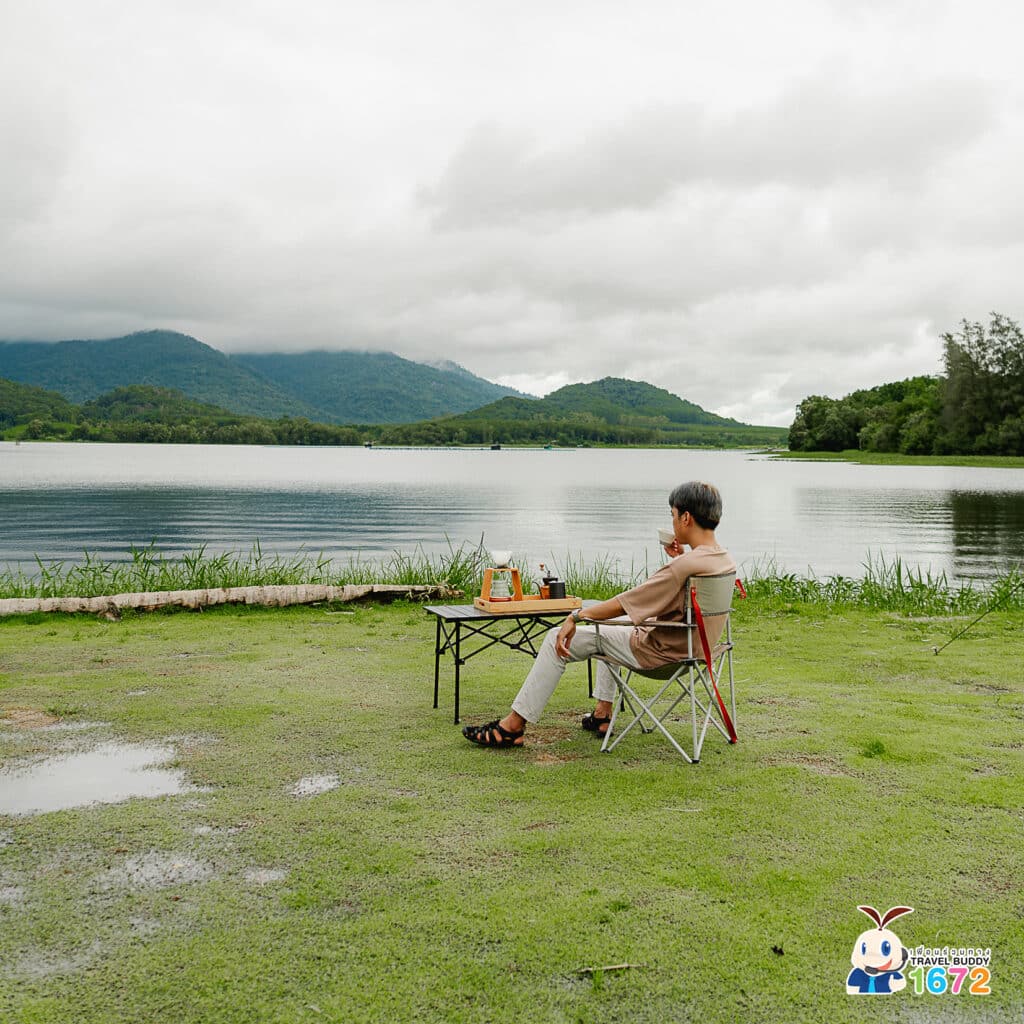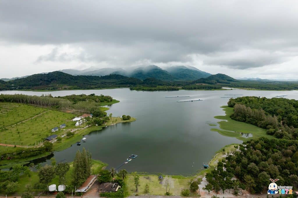 ที่นี่ตั้งอยู่ติดกับอ่างเก็บน้ำคลองละโอกหรือที่หลายคนเรียกกันว่า อ่างเก็บน้ำเขาจุก ที่มองเห็นวิวภูเขาสลับซับซ้อนเป็นฉากหลังก็คือ อุทยานแห่งชาติเขาชะเมา นั่นเองค่ะ